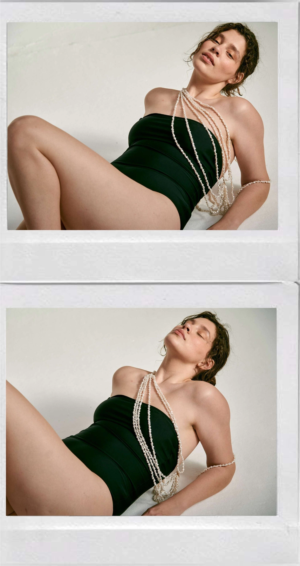 Esta enteriza strapless tiene corte recto en el frente que baja en la espalda.